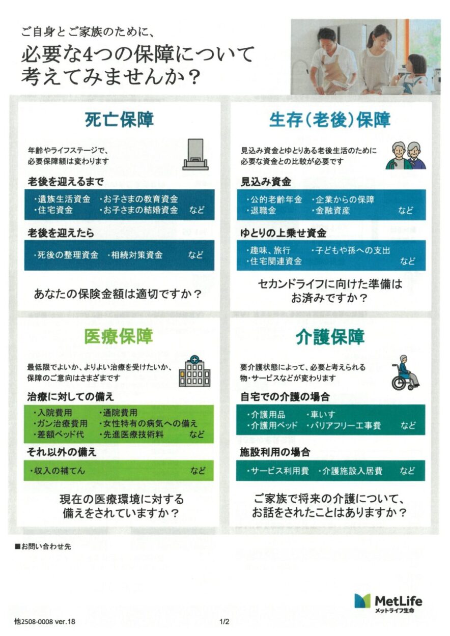 ご自身とご家族のために、必要な4つの保障について考えてみませんか?